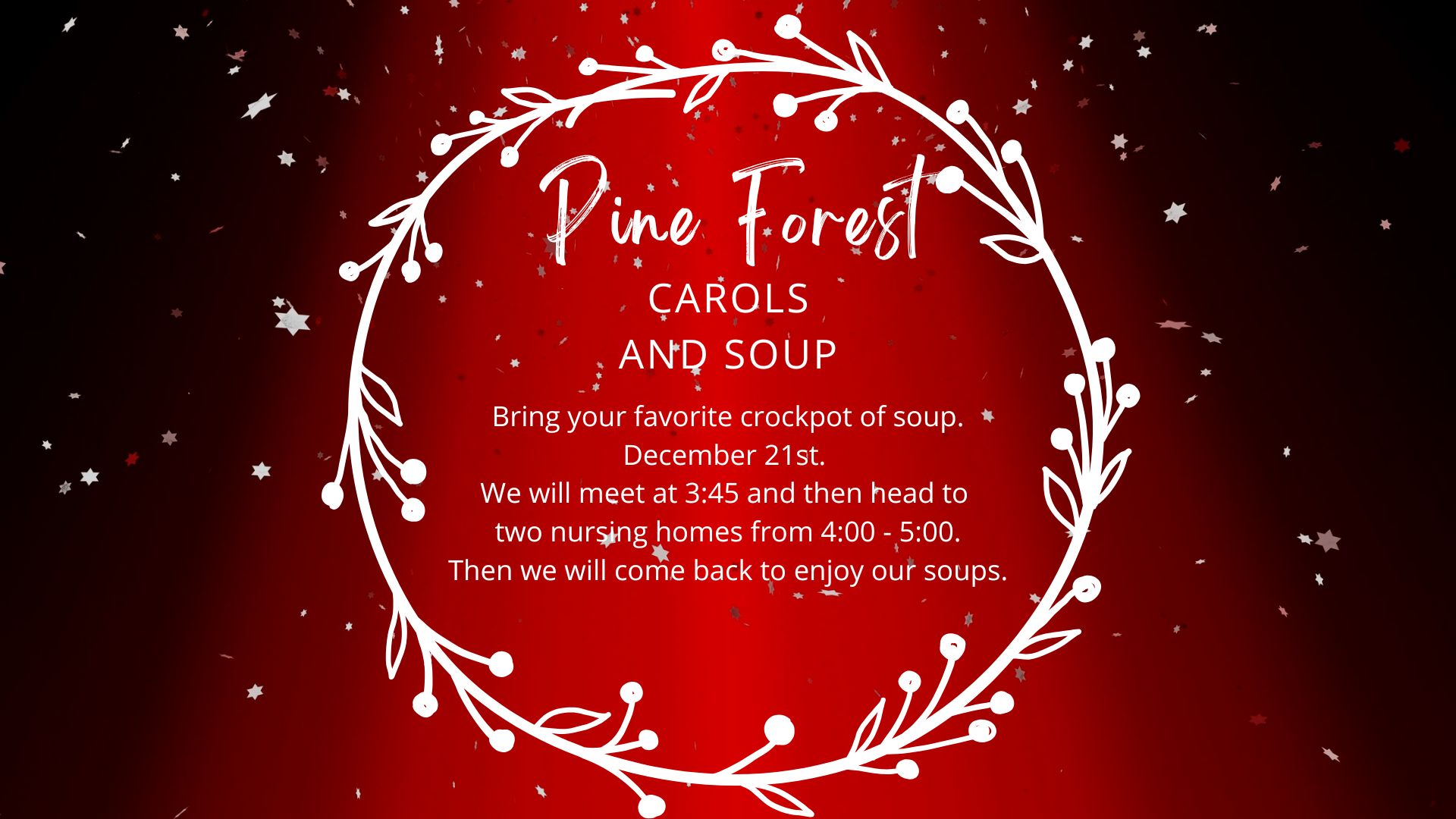 Warm up your voices and join us as we go caroling at a few local assisted living centers, then return to enjoy a cozy time of fellowship and soup together. Don’t forget to bring a crockpot of your favorite soup, sandwich or dessert to share! 🍲 Join us December 21st at 3:45 we will head to the assisted living centers by 4:00pm.