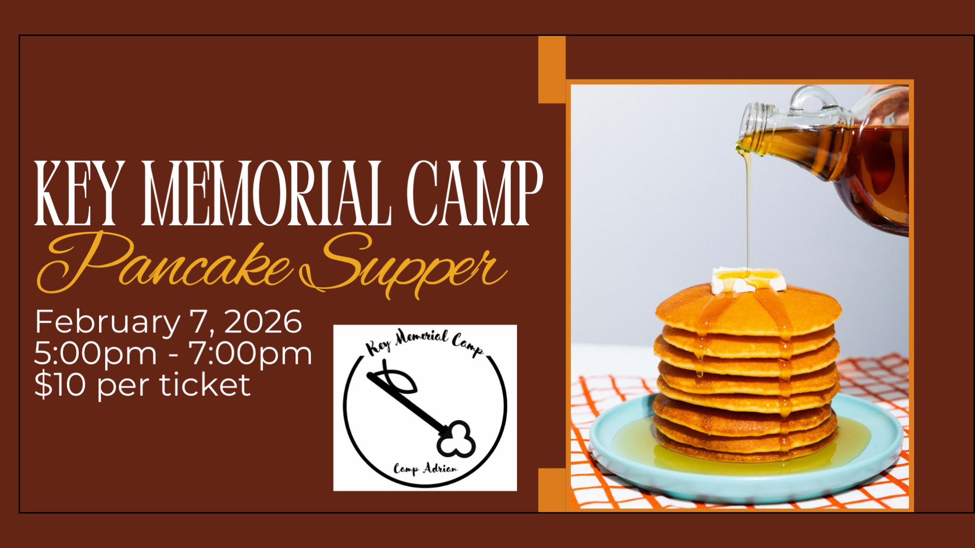 Come out and support Key Memorial Camp for their 2nd annual Pancake Supper.