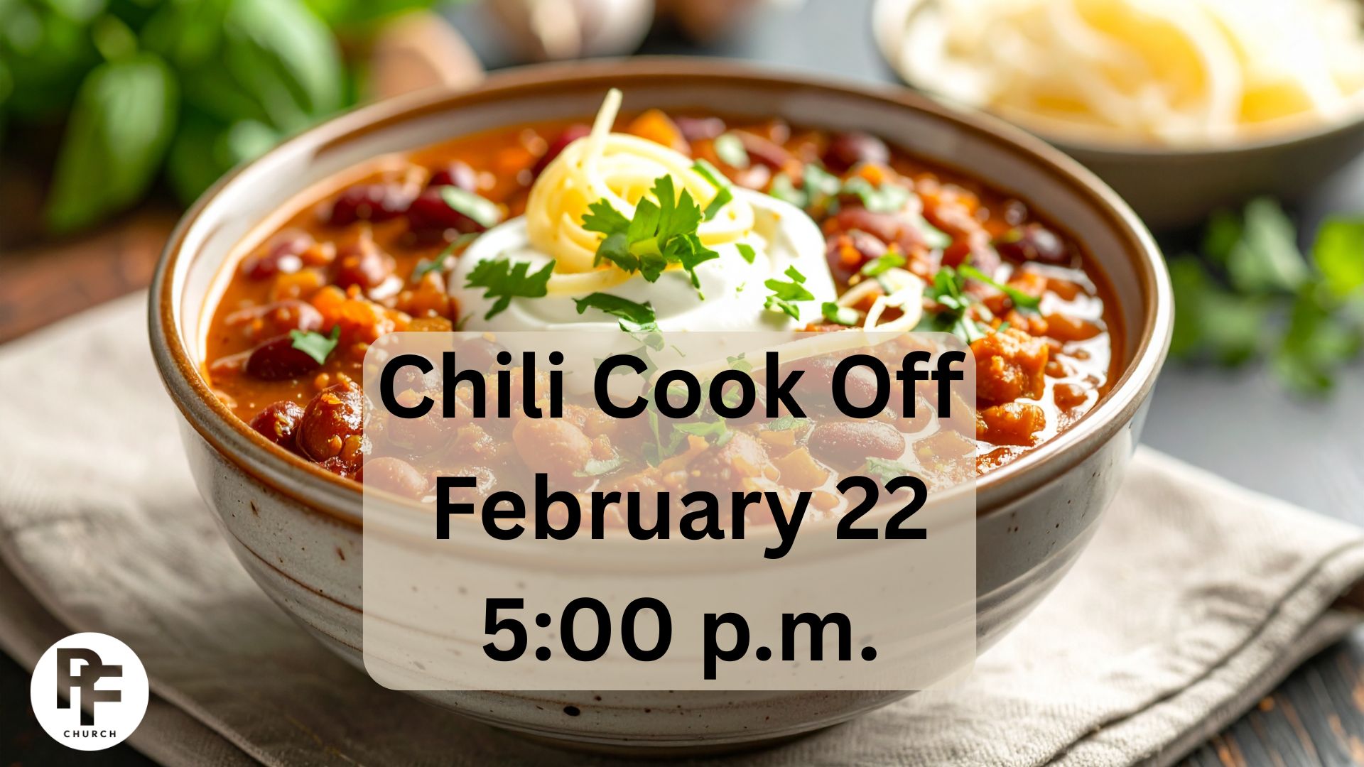 Come for the fellowship, stay for the chili! Bring a pot of your favorite recipe (mild, medium, or hot) and a hearty appetite.
